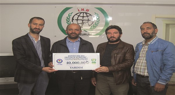 ERKHABER/ERZURUM-Erzurum Eğitim Bir Sen 1 ve 2 Nolu Şube yönetimlerince ildeki ihtiyaç sahibi ailelere giyecek ve yiyecek yardımı, özellikle yetim çocuklara giyecek yardımı olarak ulaştırılmak üzere İHH Erzurum şubesine 40 bin TL bağışta bulunuldu.