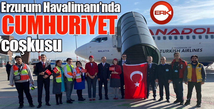 ERKHABER / ERZURUM - Erzurum Havalimanı Devlet Hava Meydanları İşletmesi (DHMİ) çalışanları, Nöbetçi Müdür Orhan Özsoy nezaretinde Ankara uçağı yolcularına 29 Ekim sürprizi yaptılar.