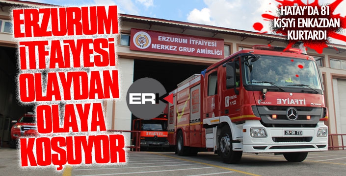 Erzurum İtfaiye ekipleri deprem bölgesinde de ciddi destekler verdi. Bölgeye 69 personel gönderen Erzurum Büyükşehir Belediyesi İtfaiye Daire Başkanlığı, Hatay’ın Antakya ilçesinde 5 binaya müdahale etti, 81 kişi sağ olarak kurtarıldı, 394 ölü enkazdan çıkarıldı.