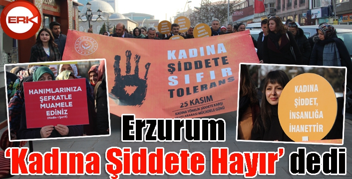ERKHABER / ERZURUM - Sınır, milliyet, din ve sınıf farkı gözetmeksizin, dünyanın her yerinde yaşanan kadına yönelik şiddetin son bulması için ilan edilen ‘25 Kasım Kadına Yönelik Şiddete Karşı Uluslararası Mücadele Günü’ne Erzurum halkı destek verdi.