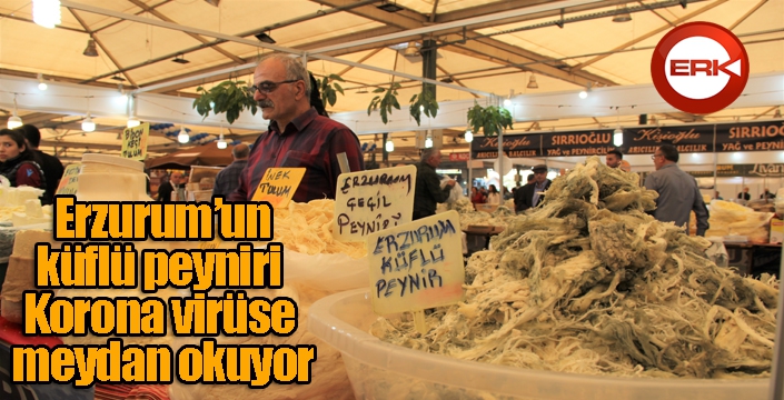 ERKHABER / ERZURUM - İzmir’de düzenlenen 1. Erzurum Tanıtım Günleri etkinlikleri kapsamında Erzurum’un yöresel ürünleri, İzmirlilerle buluşuyor. Cağ kebabından, kadayıf dolmasına kadar birçok yöresel ürünün bulunduğu etkinlikte Erzurum küflü peynirinin Korona virüse meydan okuduğuna vurgu yapıldı.