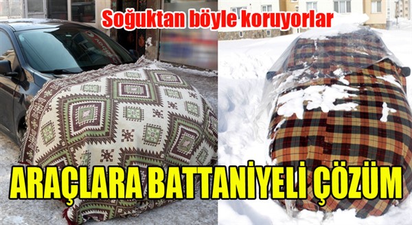 ERKHABER / ERZURUM - Hava sıcaklığının sıfırın altında 20 dereceye kadar düştüğü Erzurum’da, bazı sürücüler araçlarını korumak için çeşitli önlemler aldı.
