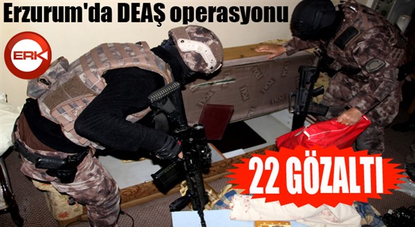 İl Emniyet Müdürlüğü Terörle Mücadele Şubesi ekipleri, kent merkezi ile Yakutiye, Palandöken ve Aziziye ilçelerinde düzenledikleri eş zamanlı operasyonda DEAŞ'ın kent yapılanması içinde bulundukları belirlenen 22 zanlıyı gözaltına aldı.