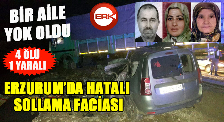 ERKHABER / ERZURUM - Erzurum’un Aşkale ilçesinde kamyon ile otomobilin kafa kafaya çarpışması sonucu meydana gelen trafik kazasında aynı aileden 4 kişi hayatını kaybetti, 1 çocuk ağır yaralandı.