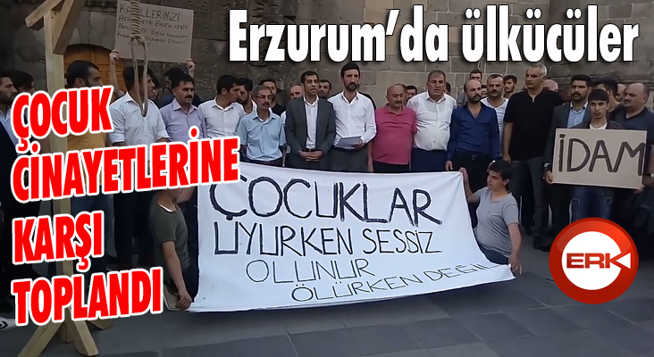 ERKHABER / ERZURUM - Erzurum Ülkü Ocakları İl Başkanlığı çocuk istismarı ve cinayetlerine karşı Yakutiye Kent Meydanı’nda basın toplantısı düzenlendi. Meydana getirilen “sembolik dar ağacı” ve “idam istiyoruz” yazılı dövizlerle yaşanan olayların protesto edildiği basın toplantısına Erzurum Ülkü Ocakları Başkanı Haktan Genç, Kamu sen İl Başkanı Mücip Gözeger, Kamu-Sen Şube Başkanları ve çok sayıda vatandaş katıldı.