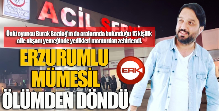 ERKHABER / ERZURUM - Bursa’da ünlü oyuncu Burak Bozdağ'ın da aralarında bulunduğu 15 kişilik aile akşam yemeğinde yedikleri mantardan zehirlendi. Çevredeki hastanelere kaldırılan vatandaşlar tedavi altına alındı.