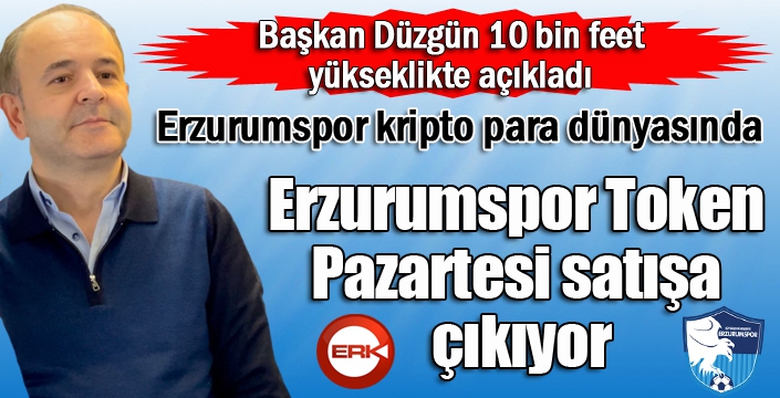 ERKHABER / ERZURUM - Maddi sorunlarını aşmak için arayışalarda bulunan Büyükşehir Belediye Erzurumspor sonuna kripto para dünyasına adım atıyor. Kulüp Başkanı Ömer Düzgün, Samsunspor maçına giderken uçakta müjdeyi verdi ve Pazar akşamı Bitexen ile kripto para anlaşmasını imzalayacaklarını ve Pazartesi itibariyle de Erzurumspor Token adıyla satışa sunulacağını açıkladı.