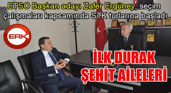 Ziyarette Şehit Aileleri Yardımlaşma ve Dayanışma Derneği Başkanı Hatem Tetik’le bir süre görüşen Ergüney’e işadamı Enver Mutlu da eşlik etti. Çıkış sebeplerinin tüm sivil toplum hareketleriyle birlikte ortak çalışma kültürü oluşturabilmek olduğunu söyleyen Ergüney, şehitlere ve onların ailelerine çok şey borçlu olduklarını da ifade ederek, “ Bizim ülkemizin tapusu şehit kanlarıyla yazılmıştır. Vatanımızın her karış toprağında şehit kanı mevcuttur. Onun içinde ilk ziyaretimizi Şehit Aileleri Yardımlaşma ve Dayanışma Derneği’ne yapmak istedik. Yapacağımız hiçbir eylem onlara karşı borcumuzu ödemeye yetmez. Ancak iş dünyası olarak şehit ailelerimizin yanında ve onlarla birlikte olduğumuzu göstermek istiyoruz” dedi.