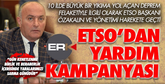 Saat 04.17’de yaşanan ve ilk belirlemelere göre; 1.498 kişinin hayatını kaybettiği, 8 bin 533 vatandaşın yaralandığı depremde, 2 bin 834 binanın yıkıldığı büyük depremin ülkede herkesi derin üzüntüye boğduğunu ifade eden ETSO Yönetim Kurulu Başkanı Saim Özakalın, “Acımız büyük, milletimizin başı sağ olsun. Oda olarak kış mevsiminin ortasında bu büyük felaketi yaşayan insanlarımızın yanında olmak, onların acılarını paylaşmak ve imkanlarımız nispetinde onların ihtiyaçlarını gidermek adına hem nakdi hem de ayni olmak üzere iki ayrı yardım kampanyası başlattık” dedi.