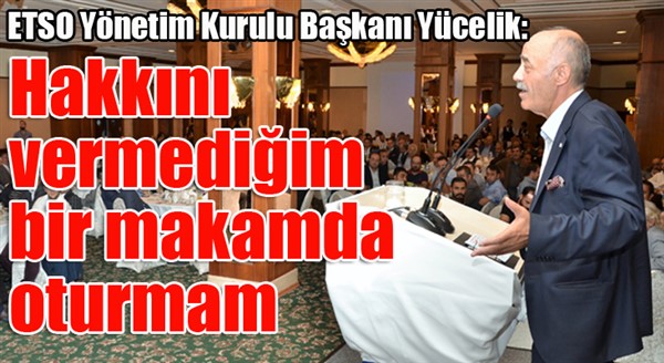 Odanın organ seçimleri öncesi çalışma arkadaşları ve oda üyesi işadamlarıyla bir araya geldikleri bir program düzenlediklerini ifade eden ETSO Yönetim Kurulu Başkanı Lütfü Yücelik, seçimin Bakanlar Kurulu kararıyla 2018 yılı Nisan ayına ertelenmesine rağmen programı iptal etmediklerini belirterek, davetine icabeti eden herkese teşekkür etti.