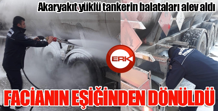 ERKHABER / ERZURUM - Balataları alev alan Akaryakıt yüklü tanker faciaya ramak kala söndürüldü.