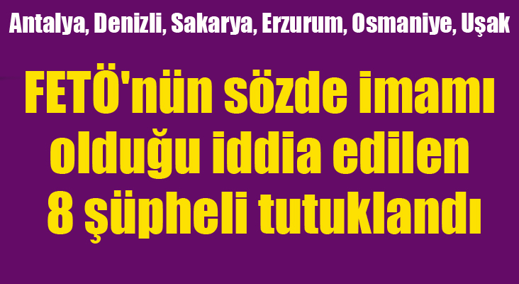 TEM ekipleri, Antalya Cumhuriyet Başsavcılığı talimatıyla Antalya, Denizli, Sakarya ve Erzurum, Osmaniye ve Uşak'ta ev ve iş yerlerinden oluşan 10 adrese eş zamanlı operasyon düzenledi. Operasyonda askeri mahrem yapının sivil imamları konumunda oldukları iddia edilen ve aralarında doktor, öğretmen, sivil memur ve öğretim üyelerinin de bulunduğu 10 sivil gözaltına alındı. Emniyetteki sorguları tamamlanan 10 şüpheli dün adliyeye sevk edildi. Şüphelilerden A.İ, M.N.Ç, M.B, M.G, N.Ç, S.K, S.B. ve T.D. tutuklanırken, E.K. ile G.A. adli kontrol kararıyla serbest bırakıldı.