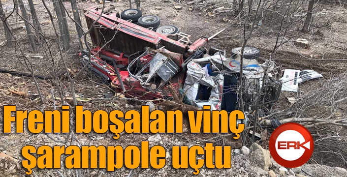 ERKHABER / ERZURUM - Erzurum’un İspir ilçesinde meydana gelen kazada freni boşalan vinç şarampole devrildi. Kazada araç içerisinde sıkışan sürücü Erzurum’da tedavi altına alındı.