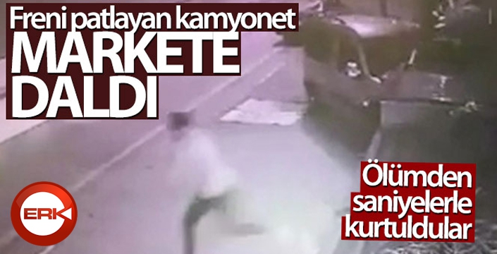 ERKHABER / ERZURUM - Kaza, dün akşam saatlerinde Bursa şehir merkezinde meydana geldi. Edinilen bilgiye göre F.A., idaresindeki 16 CMG plakalı kamyonetin frenleri, rampa aşağı indiği esnada patladı. Sürücüsünün durduramadığı kamyonet, büyük bir hızla rampanın sonunda bulunan markete daldı. Kaza sebebiyle markette büyük zarar oluşurken, kazada kimsenin yaralanmaması muhtemel bir facianın önüne geçti. Kaza sırasında markette bulunan müşteriler ve iş yeri sahibi Gökhan K. ise ölümden saniyelerle kurtuldu. Kaza anı ve müşterilerin saniyelerle ölümden döndüğü panik anları, kameralar tarafından an be an görüntülendi. Markette büyük maddi zarar oluşurken, kullanılamaz hale gelen kamyonet, çekici yardımıyla bölgeden kaldırıldı.