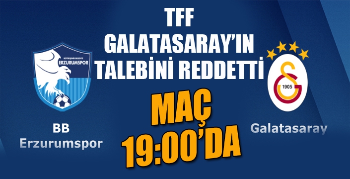ERKHABER / ERZURUM - Galatasaray kulübü, ligin 24. haftasında oynanacak olan Erzurumspor maçının saatinin değişimi hakkında Futbol Federasyonu'na yaptıkları başvurunun olumsuz sonuçlandığını açıkladı.