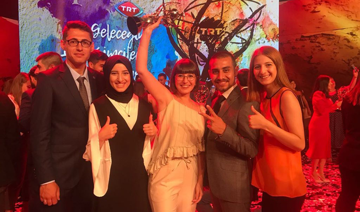 Hazırladıkları programla ödül alan Cemal Turan Kaya, Alper Çolak, Nilsu Lokumcu ve Elif Şahin, mezuniyet kutlaması da yaptı. Gazetecilik bölümünü başarıyla tamamlayan öğrenciler, “Okulumuzu böylesine önemli bir yarışmada ödül olarak tamamlamak bizleri ayrıca gururlandırdı” dediler.