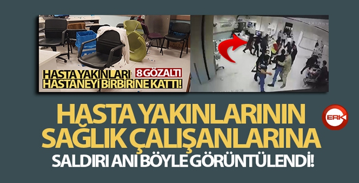 Saldırı anı ise hastanenin güvenlik kamerasına saniye saniye yansıdı. Görüntülerde hasta yakınlarının sağlık ve güvenlik çalışanlarına darp ettiği görüldü.