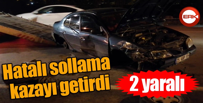 Edinilen bilgilere göre, Erzurum’un Aziziye ilçesine giden otoyolda 25 ABP 554 plakalı araç ve 34 FL 83 plakalı araç hatalı sollama nedeniyle kaza yaptı. Kaza sonucu Renault Tempra marka araç kullanılamaz hale gelirken, Wolksvagen Jetta marka araç ise yol kenarında bulunan demir telleri yıkarak boş araziye uçtu. Hatalı sollama nedeniyle oluşan kazada ölü bulunmazken iki şoför de sağlık ekipleri tarafından hastaneye kaldırıldı.