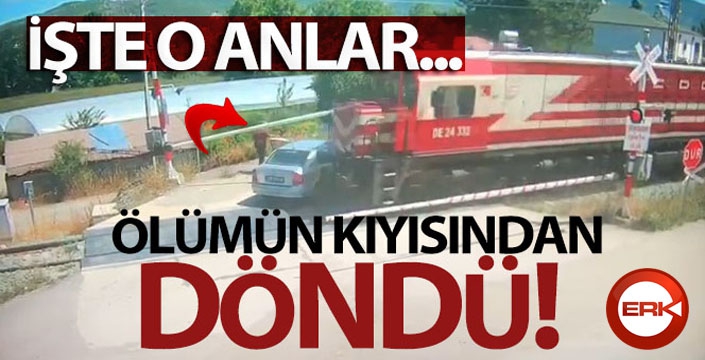 ERKHABER / ERZURUM - Büyük Kızılca köyünde bariyeri eliyle açıp hemzemin geçidi kullanan otomobil sürücüsü diğer bariyeri de kaldırmaya çalıştı. O esnada gelen yük treninin makinistini eliyle uyarmaya çalışan sürücünün otomobili trenin altında kaldı, kendisi ise şans eseri kurtuldu.