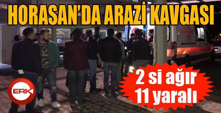 Olay, dün akşam saatlerinde, ilçeye bağlı Çamlıkale köyünde meydana geldi. Aralarında arazi anlaşmazlığı nedeniyle köy muhtarının da içinde olduğu amca çocukları ve yeğenleri arasında tartışma çıktı Tartışma kısa sürede büyüyerek kavgaya dönüştü. Horasan Devlet Hastanesine getirilen yaralılar Erzurum Bölge Eğitim ve Araştırma Hastanesine kaldırılarak tedavi altına alındı. Bıçaklı ve silahlı kavgada, iki aileden 2’si ağır 11 kişi yaralandı.