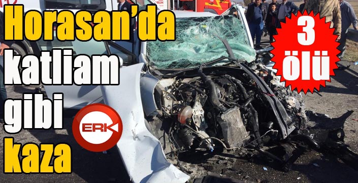 ERKHABER / ERZURUM - Erzurum’un Horasan ilçesinde taziyeye gidenleri taşıyan otomobil ile tırın çarpıştığı kazada 3 kişi hayatını kaybetti.