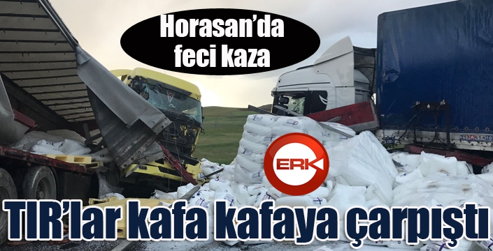 ERKHABER / ERZURUM - Kaza, dün akşam saatlerinde Erzurum Horasan-Ağrı yolu üzerinde bulunan Saçdağı Geçidi yakınlarında meydana geldi. Yağışlardan dolayı yolun kayganlaşması ile direksiyon hakimiyetini kaybeden, Iğdır'dan Horasan istikametine gelmekte olan 76 DF 796 plakalı Osman Özer yönetimindeki tır, karşı yönden gelen 13 A 654 10 İran plakalı Talebnavehsi Morteza yönetimindeki tır ile kafa kafaya çarpıştı.