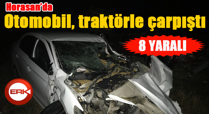 ERKHABER / ERZURUM - Erzurum’un Horasan ilçesinde otomobil ile traktörün çarpışması sonucu meydana gelen trafik kazasında 8 kişi yaralandı.