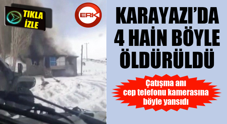 ERKHABER / ERZURUM - Erzurum'un Karayazı ilçesinde, terör örgütü PKK'nın sözde "Karayazı-Eleşkirt Grup Sorumlusu" olan "Adil" kod adlı Tarık Şen'in de aralarında bulunduğu 4 teröristin etkisiz hale getirildiği operasyon sayesinde örgütün sözde "Karayazı-Eleşkirt Grubu" tamamen çökertildi. Hücre evinde 4 teröristin etkisiz hale getirildiği çatışma anı cep telefonu kamerasına yansıdı.