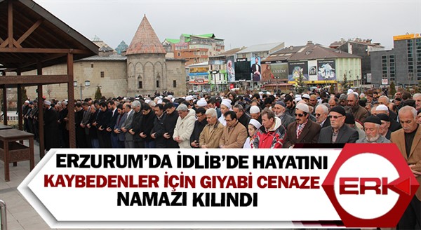 ERKHABER / ERZURUM- Erzurum’da Suriye’nin İdlib kentine yapılan saldırıda hayatını kaybedenler için gıyabi cenaze namazı kılındı.