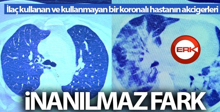ERKHABER / ERZURUM - Sağlık Bakanı Fahrettin Koca ve uzmanlar korona virüs hastalarının tedavi sürecinde ilaç kullanılması konusunda sık sık uyarılarda bulunuyor. Göğüs Hastalıkları Uzmanı Prof. Dr. Şevket Özkaya, 55 yaşında ve 1 hafta ilaç kullanmayan pozitif bir hastanın akciğerlerindeki inanılmaz değişimi tomografi sonuçlarını göstererek ortaya koydu.