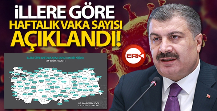 ERKHABER / ERZURUM - Sosyal medya hesabından haftalık haritayı paylaşan Koca, "14-20 Ağustos arasında, 100.000 kişi içinde bir haftalık toplam yeni Covid-19 vaka sayısı neydi? Yaşadığınız veya gidip geldiğiniz ildeki durumu haftalık İnsidans haritamızdan öğrenebilirsiniz. Son haritaya göre yeni vaka yoğunluğunun en yüksek olduğu il Rize" dedi.