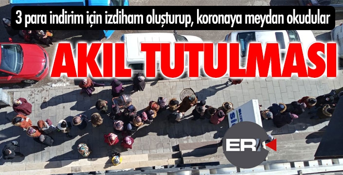 Erzurum’da bir alış veriş merkezinde zücaciye ürünlerinde indirim yapılacağını öğrenen vatandaşlar sabahın erken saatlerinden itibaren işyeri önünde uzun kuyruklar oluşturdu. Kısa sürede yoğunlaşan kalabalık sosyal mesafe kurallarını hiçe sayarken, polise yapılan ihbar sonrası güvenlik güçleri işyeri önünde tedbir aldı. Vatandaşları mesafe kuralları içerisinde tek sıraya yapan polis vatandaşların sıralı olarak alış veriş merkezine girmesini sağladı. Çoğunluğunu ev kadınlarının oluşturduğu kalabalık pandemi sürecinde yaşanan bilinçsizliği gözler önüne serdi.