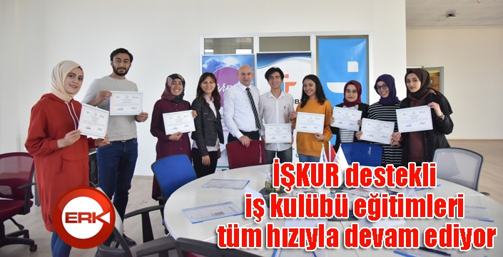 ERKHABER / ERZURUM - “Çalışmak İsteyen Herkese Göre Bir İş” olduğu düşüncesinden yola çıkılarak Erzurum Çalışma ve İş Kurumu İl Müdürlüğü’nde 2018 Kasım ayından buyana faaliyette olan İş Kulübün de eğitimler hız kesmeden devam ediyor.