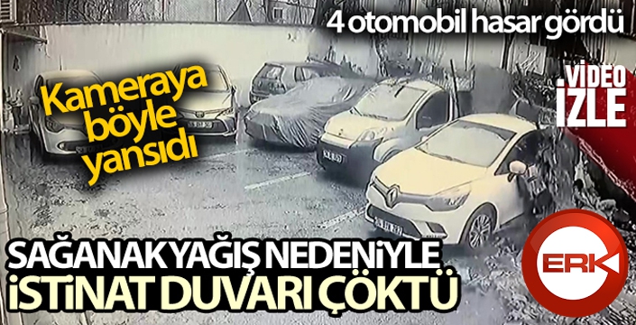 İstinat duvarının otomobillerin üzerine çökme anı güvenlik kamerasına saniye saniye yansıdı.