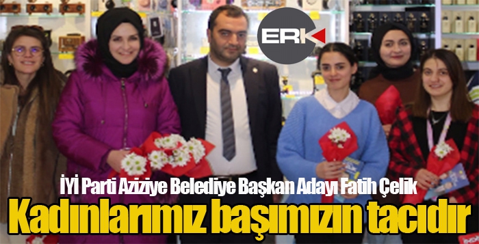 İYİ Parti Aziziye Belediye Başkan Adayı Fatih Çelik, " 8 Mart Dünya Kadınlar Gününü de kutlayarak, " Kadın ve erkek yaşamın her alanında birlikte olduğunda, yaşam anlam kazanır. Gelecek kuşaklarımızı yetiştiren kadınlarız bizim başımızın tacıdır. Yüce yaradan Cenneti annelerin ayaklarının altına sermiştir. Biz kulları olarak da aynı hassasiyetle kadınlarımıza yaklaşmalıyız. Bozkırın tezenesi Rahmetli Neşat Ertaş, Kadınlar insandır, erkekler insanoğlu, sözünü hatırlatarak, başta ilçemizde yaşayan kadınlarımızın olmak üzere tüm kadınlarımızın bu özel gününü kutluyorum. " dedi.
