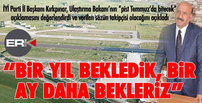 Bakan Karaismailoğlu’nun “Temmuz'da bitecek” ifadeleriyle ilgili olarak Kırkpınar, “Sayın Bakanın bu sözünün takipçisi olacağız. Bizler siyasetin hak için halk için yapılması gerektiğine inanan insanlarız. Bu inançla her hangi bir oy kaygısı taşımadan, Erzurum’a hizmet eden kim olursa olsun, destekleriz, tebrik ederiz. Ancak üzüntü verici olan şu ki Trabzon Havalimanı pandemi sürecinde de çalışılarak, bitirilmişken, Erzurum’da 3,5 kilometrelik pist asfaltı, bir türlü yapılamıyor, bitirilemiyor. Bu nasıl izah edilir, kamuoyunun vicdanına bırakıyorum. Bu kadar bekledik, Temmuz'u da bekleriz. Umarız sayın bakan verdiği sözü tutar” diye konuştu