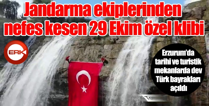 Erzurum İl Jandarma Komutanlığı’na bağlı arama ve kurtarma ekiplerince 29 Ekim Cumhuriyet Bayramının 99. yıldönümü etkinlikleri kapsamında Erzurum Kalesi, Çifte Minareli Medrese, Narman Peri Bacaları, Tortum Şelalesi, Yedi Göller Ve Tarihi Saat Kulesi’nde dev Türk bayrakları açıldı. Jandarma Su Altı Komandolarının uzun göldeki dalışı ve bayrak açması renkli görüntülere sahne oldu.