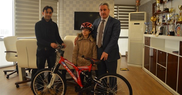 Vali Azizoğlu da, 10 yaşındaki minik sporcunun isteğini yerine getirdi. Azizoğlu tarafından hediye edilen bisiklet Gençlik Hizmetleri ve Spor İl Müdürü Fuat Taşkesenligil tarafından Sümeyye Uruk’a teslim edildi.