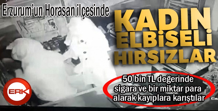 ERKHABER / ERZURUM - Erzurum’un Horasan ilçesinde yüzleri maskeli kadın elbisesi giyen iki soyguncu, girdikleri marketten 50 bin TL değerinde sigara ve bir miktar para alarak kayıplara karıştı. Soygun sonrası market sahibi Mahmut Toprak, zararının 50 bin lira değerinde olduğunu iddia ederek yetkililerden hırsızların bulunması için yardım istedi.
