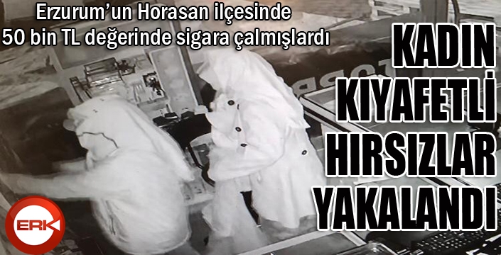 ERKHABER / ERZURUM - Erzurum’un Horasan ilçesinde yüzleri maskeli kadın elbisesi giyerek 50 bin TL değerinde sigara ve bir miktar para çalan hırsızlar yakalandı.