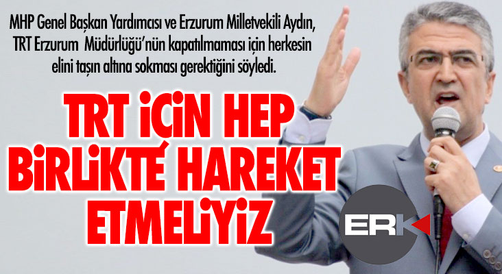 TRT Erzurum Müdürlüğü’nün kapatılacağı iddialarıyla ilgili olarak bir açıklama yapan MHP Genel Başkan Yardımcısı ve Erzurum milletvekili Prof. Dr. Kamil Aydın, “ Erzurum’un ali menfaatleri doğrultusunda bütün milletvekilleri taşın altına elini koymalı. Yüzlerce sanatçı yetiştirmiş, Erzurum’un prestijli kurumlarından biri olan TRT Erzurum Müdürlüğü kapatılmamalı. Ben Erzurum milletvekili olarak konunun takipçisi olacağım, ancak bütün milletvekilleri, iktidar muhalefet tek ses olmalıyız, bizler bu şehirden seçilmiş milletvekilleriyiz” dedi.