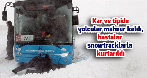 Erzurum'dan sabah 07.00'de Çat'a hareket eden otobüs, ilçeye 10 kilometre kala yolcularıyla birlikte mahsur kaldı. Tipi yüzünden kapanan yolda göz gözü görmezken, yolculardan bazılarının donma tehlikesiyle karşıya bulunduğu bildirildi. Yaklaşık 4 saat karla kapalı yolda kurtarılmayı bekleyen yolcular, ulaşacak yardımı bekledi. Otobüsün içinin buz kestiğini ve neredeyse hareket bile edemez hale geldiklerini anlatan yolcular, seslerini sosyal medyadan duyurmaya çalıştı.