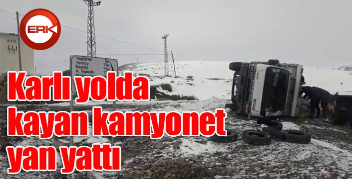 Edinilen bilgiye göre, Erzurum’dan Tekman’a giden Yusuf A. yönetimindeki 76 AR 781 plakalı kamyonet ilçeye 20 kilometre uzaklıkta Çevirme köprüsünü geçtikten sonra Kırklar şehitliği rampasında kar yağışı nedeni ile kayarak yan yattı.