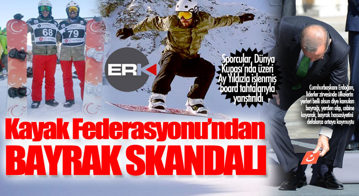Başarılarıyla adından söz ettiremeyen Snowboard Milli Takımı, Erzurum’da düzenlenen Snowboard Boardercross Dünya Şampiyonası’nda ciddi bir skandalın altına imza attı. Türkiye Kayak Federasyonu’na bağlı olan Snowboard Milli Takımı’nın sporcularının şampiyonada, üzerleri Ay Yıldızlı Türk bayrağı motifleriyle süslenmiş snowboard tahtalarıyla yarıştıkları ortaya çıktı. Türkiye Kayak Federasyonu’nda görevli bir çalışanın sosyal medya hesabından yaptığı bir paylaşımla ortaya çıkan görüntüler, Türk Bayrağı’nı Koruma Kanuna’na açıkça muhalefet edildiğini ortaya koydu.