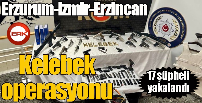 Erkhaber - Erzurum - İzmir merkezli olarak Erzincan ve Erzurum’da mafya tipi yapılara karşı düzenlenen ‘Kelebek Operasyonu’ çerçevesinde haklarında gözaltı kararı verilen 20 şüpheliden 17’si yakalandı. Şüphelilerden 4’ü tutuklanırken, firari 3 şüpheliyi arama çalışmaları devam ediyor.