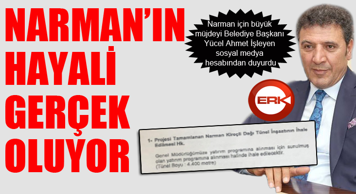 Özellikle kış mevsiminde sürücülere geçit vermeyen Kireçli Dağı Tünel müjdesi Narman’da büyük sevinç yaşattı. Tünelin yapılması için yıllardır büyük uğraş veren Narman Belediye Başkanı Yücel Ahmet İşleyen, “Narman’da inşallah bir hayal gerçekleşiyor. Geçen yıl tünelin proje ihalesini yapmıştık. Bugün itibariyle proje tamamlandı”dedi.
