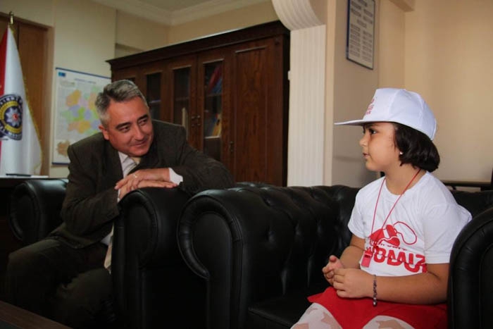 Erzurum İl Emniyet Müdür Yardımcısı Mustafa İzzet Ensar, İl Trafik Şube Müdür Vekili Murat Parmaksızoğlu, minik Beril’e bisikletini vermek üzere Oltu’ya geldiler.