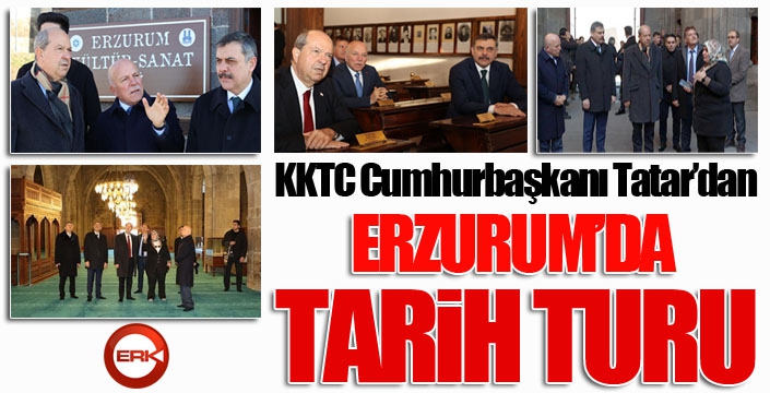 Önceki gün uçakla Erzurum’a gelen ve buradan karayolu ile Kars’a geçen Tatar, bu sabah saatlerinde yeniden Erzurum’a gelen KKTC Cumhurbaşkanı Ersin Tatar, kentin tarihi ve turistlik mekanlarını ziyaret etti. Beraberinde Erzurum Valisi Mustafa Çiftçi, Büyükşehir Belediye Başkanı Mehmet Sekmen, Emniyet Müdürü Kadir Yırtar ile birlikte Erzurum Kongre Binası, Ulu Cami, Çifte Minareli Medrese ve Kale Çevresindeki evleri gezen KKTC Cumhurbaşkanı Ersin Tatar daha sonra hava yolu ile Erzurum’dan ayrıldı.