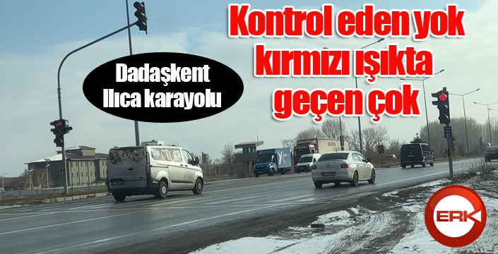 Erzurum Dadaşkent-Ilıca Karayolu'nda bulunan trafik ışıklarına hiçbir sürücünün dikkat etmemesi tepki topluyor. Ana cadde üzerinde trafik ekiplerinin ve güvenlik kameralarının olmamasından dolayı rahat tavırlar takınan sürücüler, kırmızı ışıkta geçerek trafik kazalarına davetiye çıkarıyor. Erzurum Emniyet Müdürlüğü kırmızı ışık konusunda sınıfta kalırken, trafik ışıklarına kimsenin aldırış etmemesi tehlikeyi artırmaya devam ediyor.