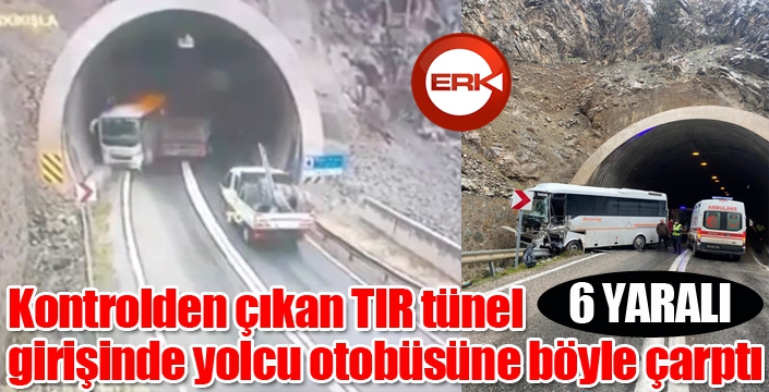 ERKHABER / ERZURUM - Artvin-Erzurum karayolu 25. kilometresinde tünele hızlı giren tır, karşıdan gelen yolcu otobüsüne çarptı. 6 kişinin yaralandığı kaza güvenlik kamerasına saniye saniye yansıdı.